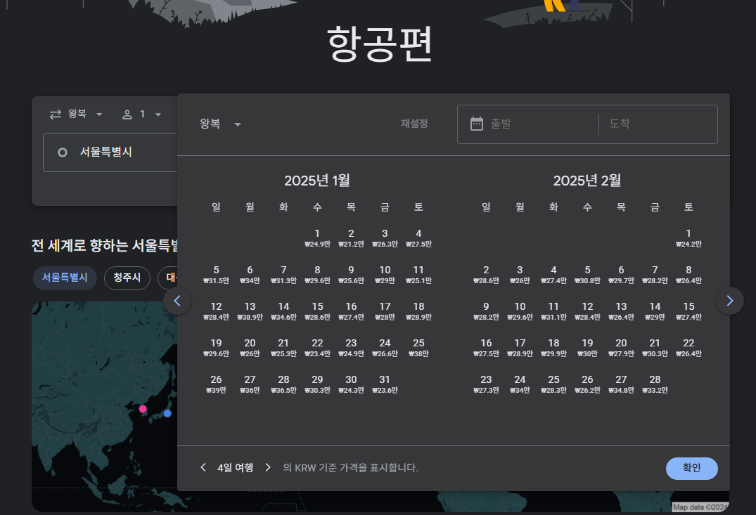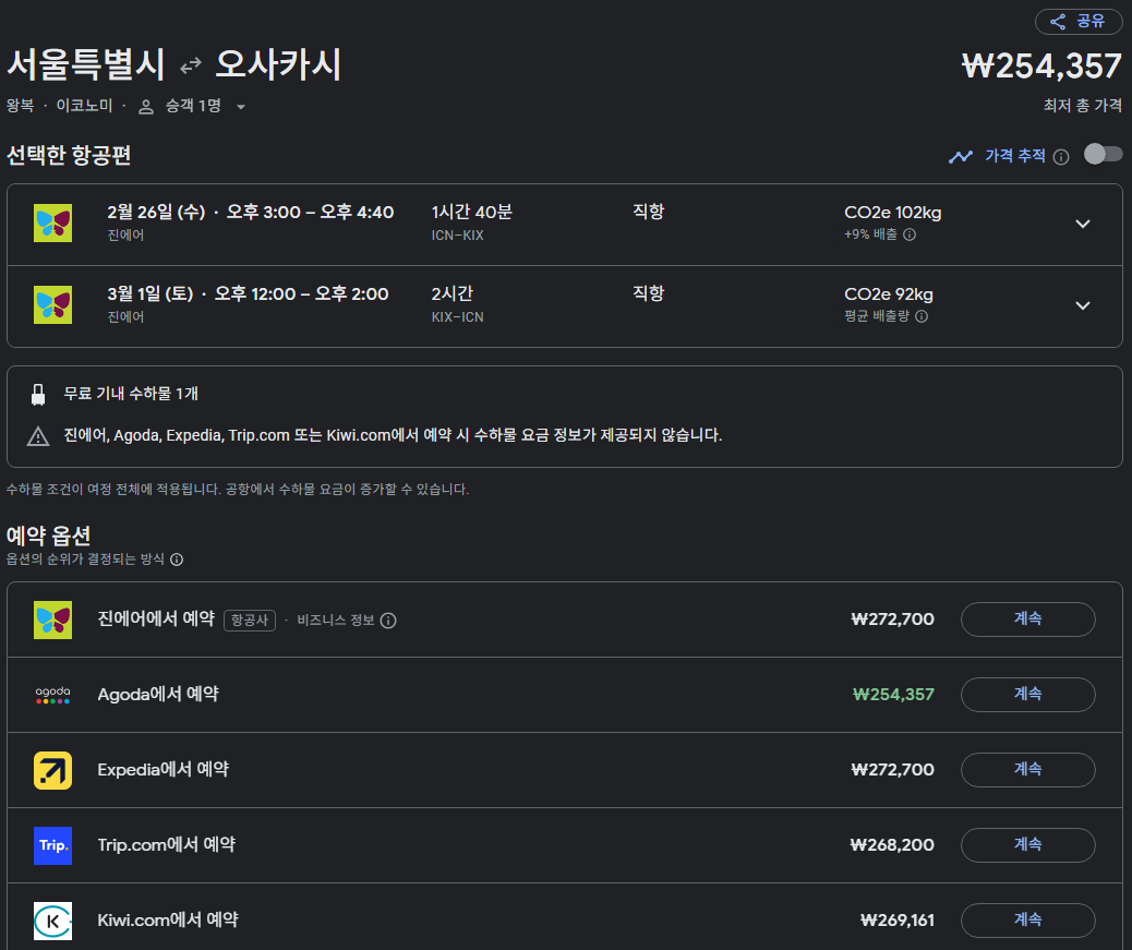 다른 사이트나 네이버 항공권에서 비교해본 결과 구글 플라이트로 조회했을 때 가장 저렴하거나 같은 가격이었습니다.