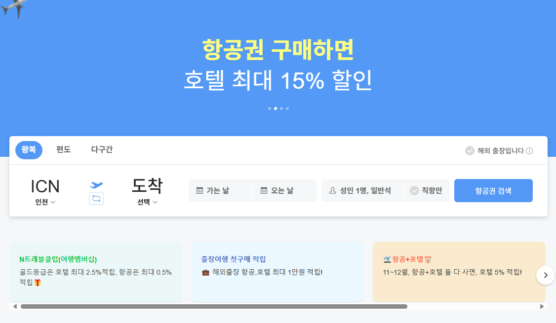 제가 알려드린 방법으로 최적의 항공편을 찾은 다음에 여러분에게 해당하는 추가 할인이 제공되는 결제수단을 선택해서 보다 더 저렴하게 이용하시면 좋을 것 같습니다. ex)네이버페이