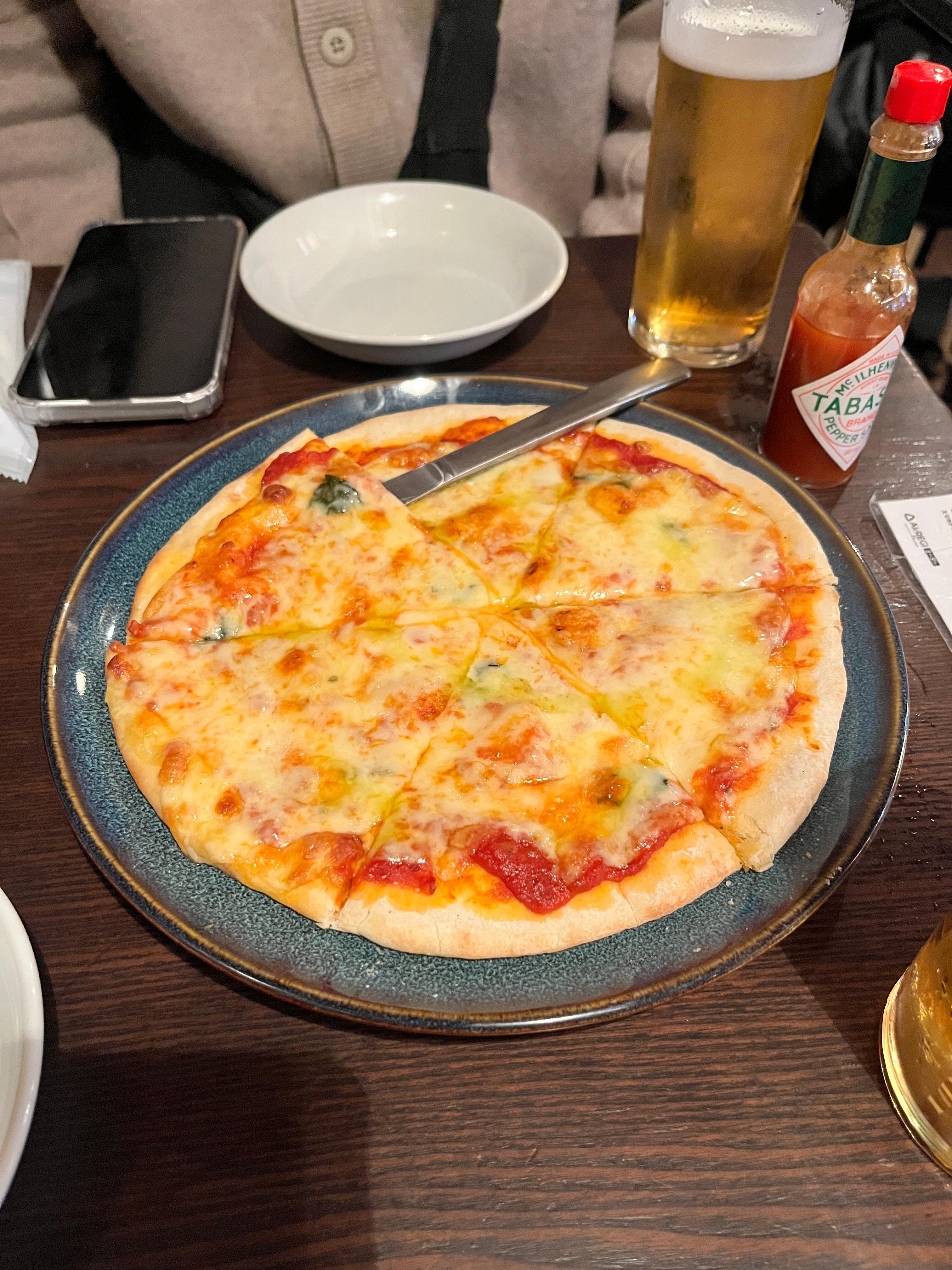 식사는 아니기때문에 간단하게 마르게리따 피자를 시켜서 먹었습니다.